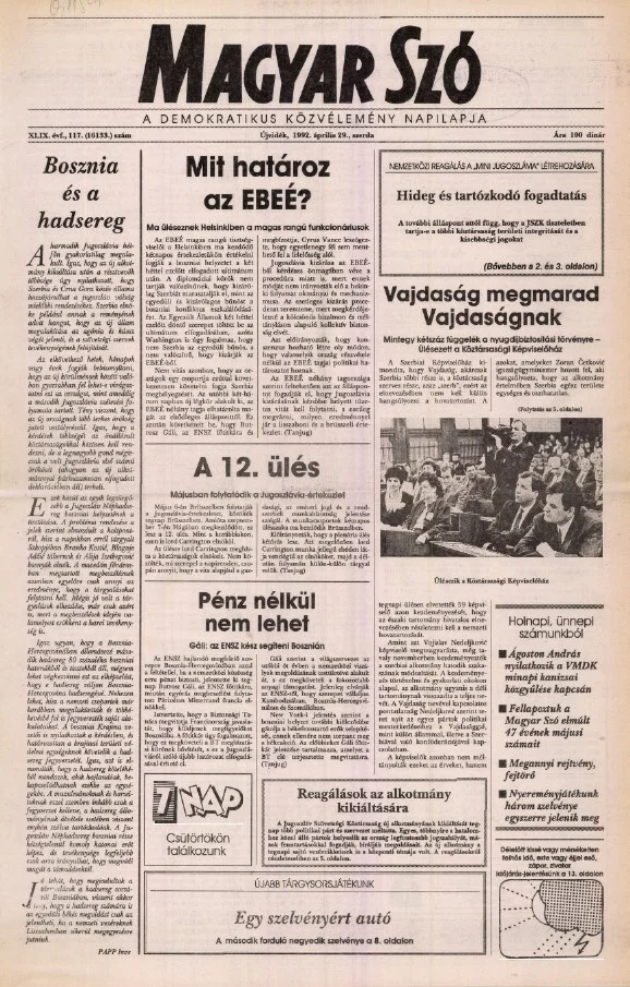 Magyar Szó, 49. évf. 1992. április 29. 117. sz. 1–16. oldal