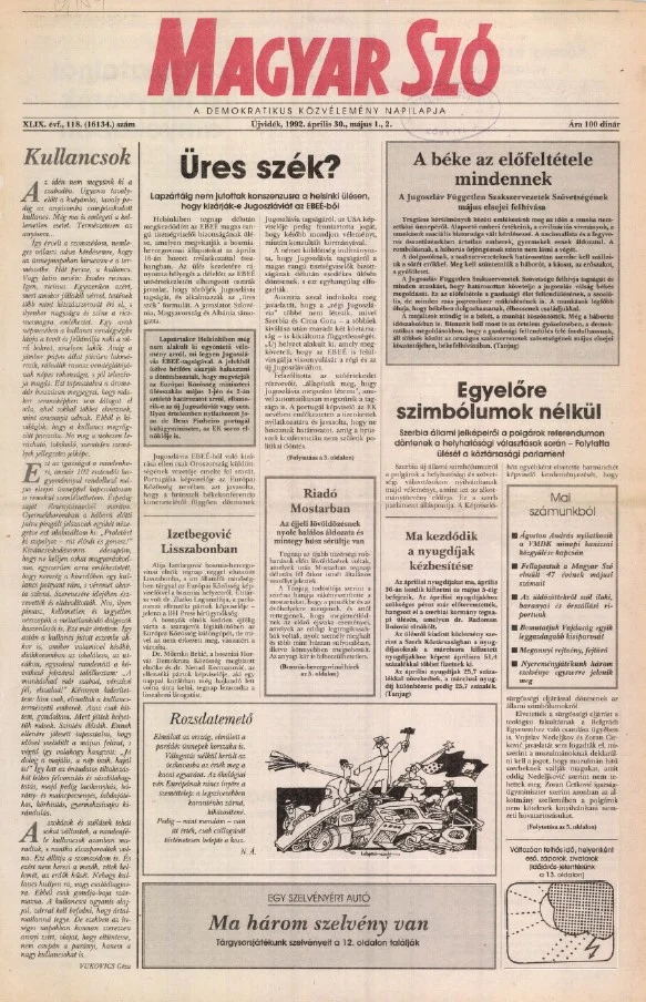 Magyar Szó, 49. évf. 1992. április 30. – május 2. 118. sz. 1–28. oldal