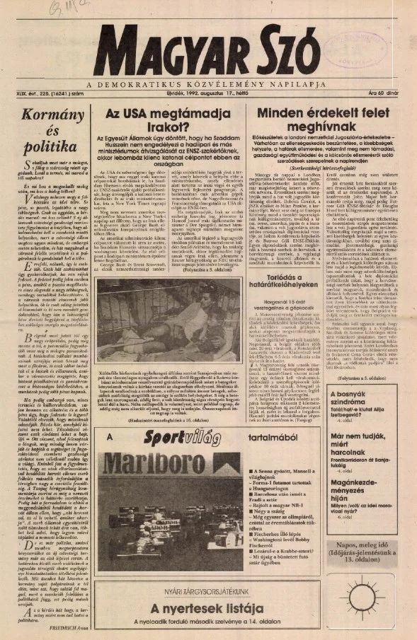 Magyar Szó, 49. évf. 1992. augusztus 17. 225. sz. 1–16. oldal