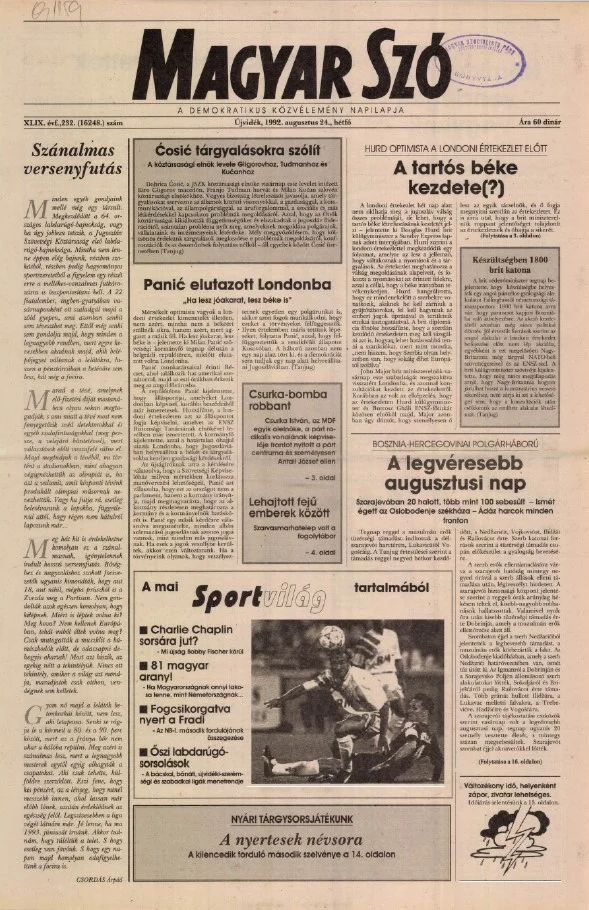 Magyar Szó, 49. évf. 1992. augusztus 24. 232. sz. 1–16. oldal