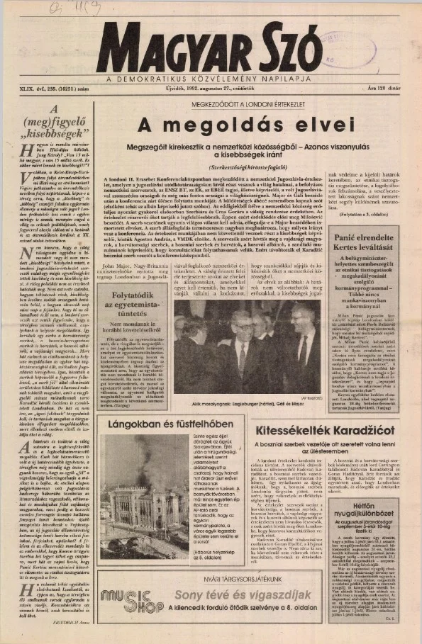 Magyar Szó, 49. évf. 1992. augusztus 27. 235. sz. 1–16. oldal