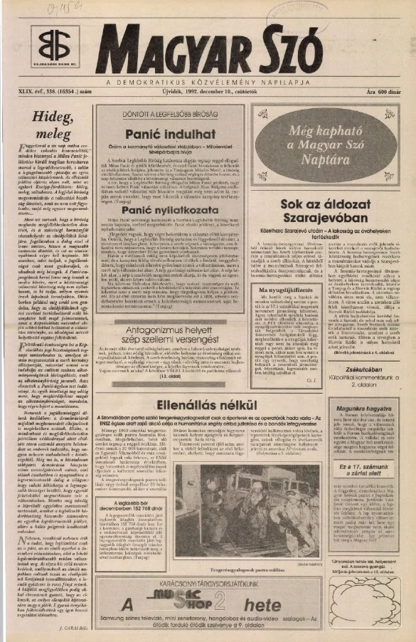 Magyar Szó, 49. évf. 1992. december 10. 338. sz. 1–16. oldal