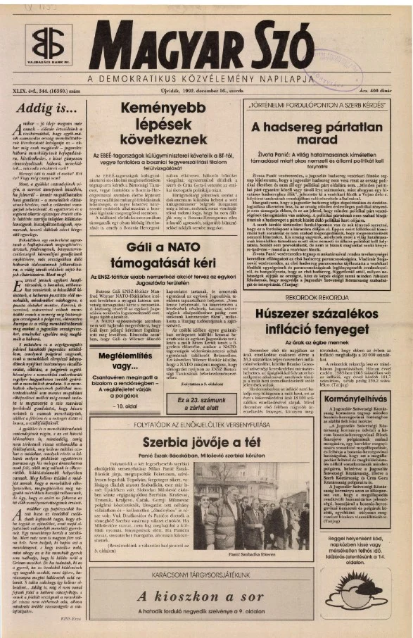 Magyar Szó, 49. évf. 1992. december 16. 344. sz. 1–16. oldal