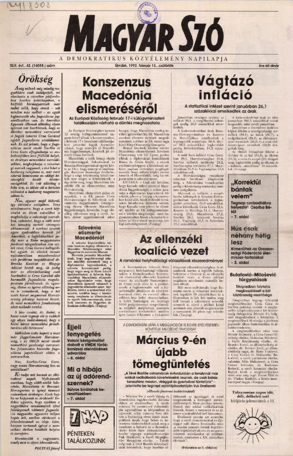 Magyar Szó, 49. évf. 1992. február 13. 42. sz. 1–16. oldal