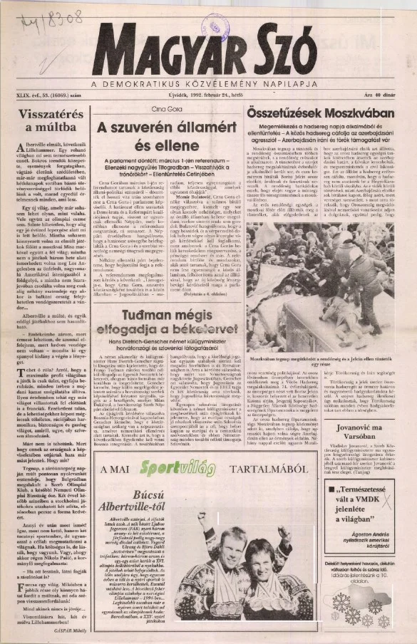 Magyar Szó, 49. évf. 1992. február 24. 53. sz. 1–20. oldal