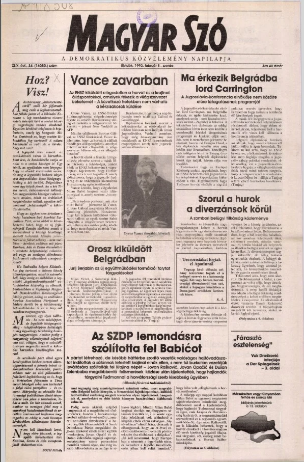 Magyar Szó, 49. évf. 1992. február 5. 34. sz. 1–16. oldal