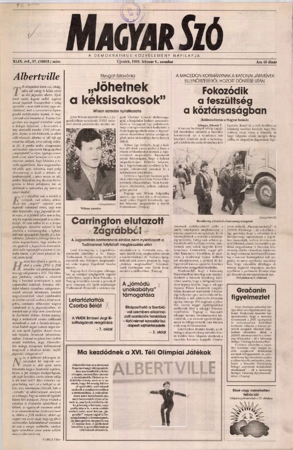 Magyar Szó, 49. évf. 1992. február 8. 37. sz. 1–20. oldal