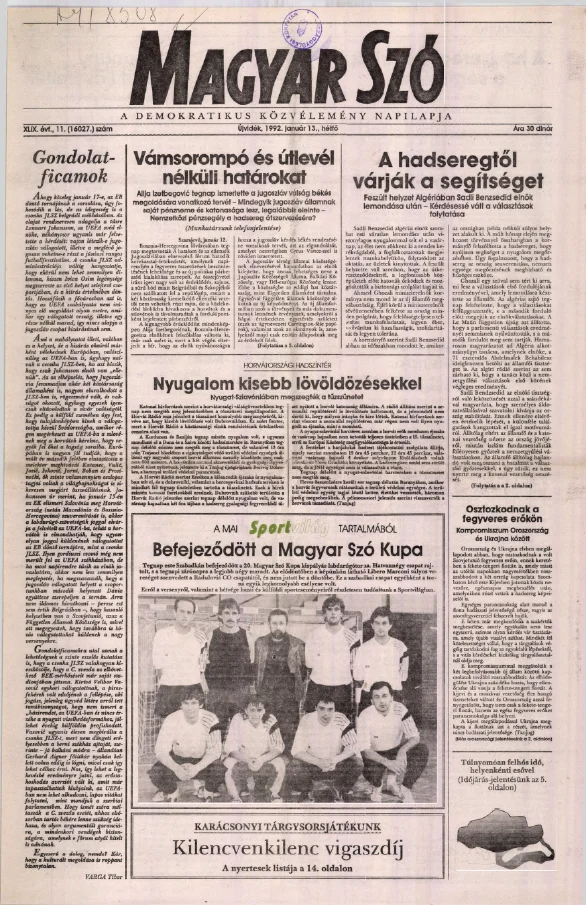 Magyar Szó, 49. évf. 1992. január 13. 11. sz. 1–16. oldal