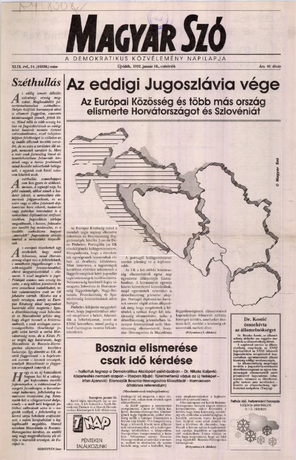 Magyar Szó, 49. évf. 1992. január 16. 14. sz. 1–16. oldal