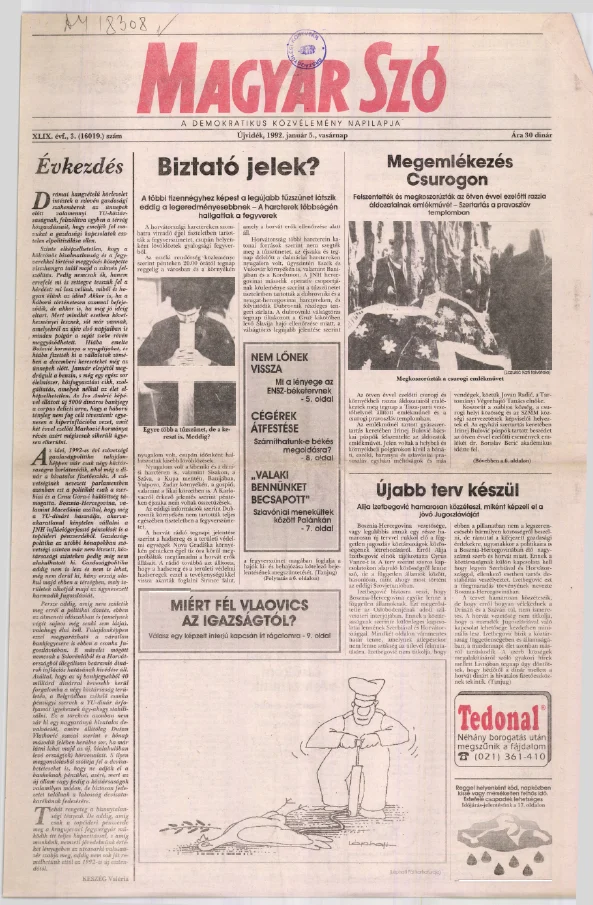 Magyar Szó, 49. évf. 1992. január 5. 3. sz. 1–24. oldal
