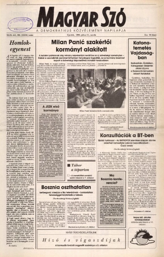 Magyar Szó, 49. évf. 1992. július 15. 192. sz. 1–16. oldal