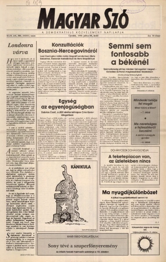 Magyar Szó, 49. évf. 1992. július 28. 205. sz. 1–16. oldal