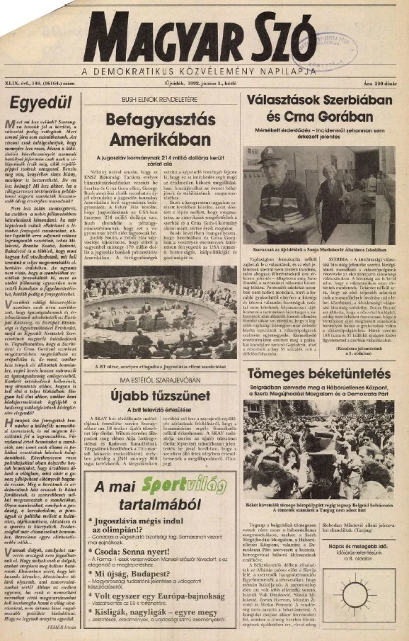 Magyar Szó, 49. évf. 1992. június 1. 148. sz. 1–16. oldal
