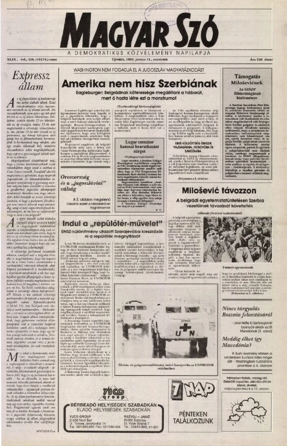 Magyar Szó, 49. évf. 1992. június 11. 158. sz. 1–16. oldal