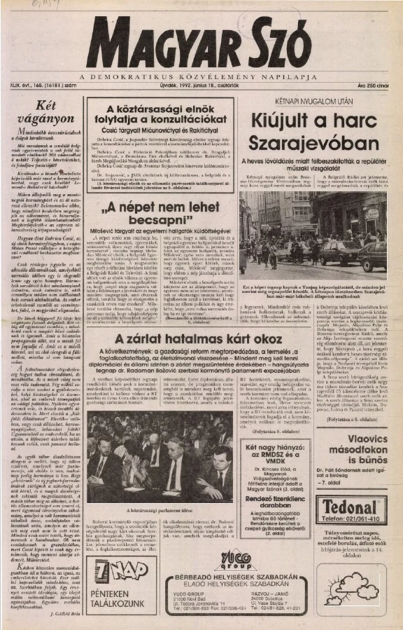Magyar Szó, 49. évf. 1992. június 18. 165. sz. 1–16. oldal