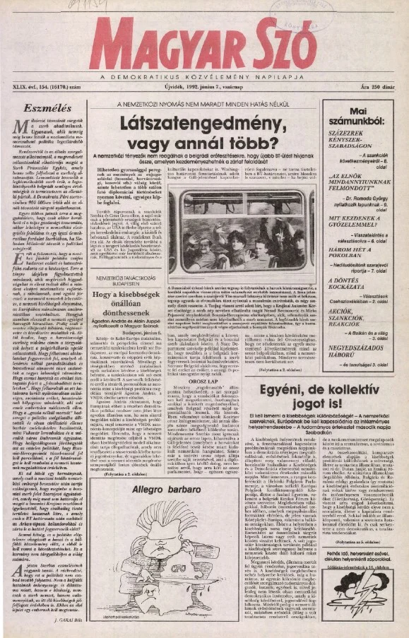 Magyar Szó, 49. évf. 1992. június 7. 154. sz. 1–28. oldal