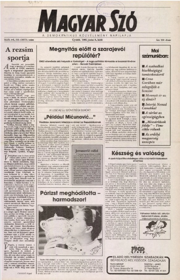 Magyar Szó, 49. évf. 1992. június 8. 155. sz. 1–16. oldal