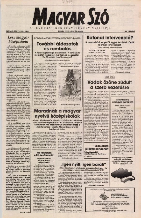 Magyar Szó, 49. évf. 1992. május 20. 136. sz. 1–16. oldal