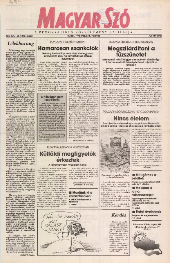 Magyar Szó, 49. évf. 1992. május 24. 140. sz. 1–28. oldal