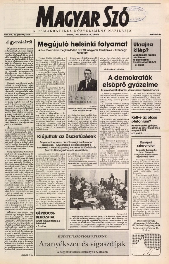Magyar Szó, 49. évf. 1992. március 25. 83. sz. 1–16. oldal