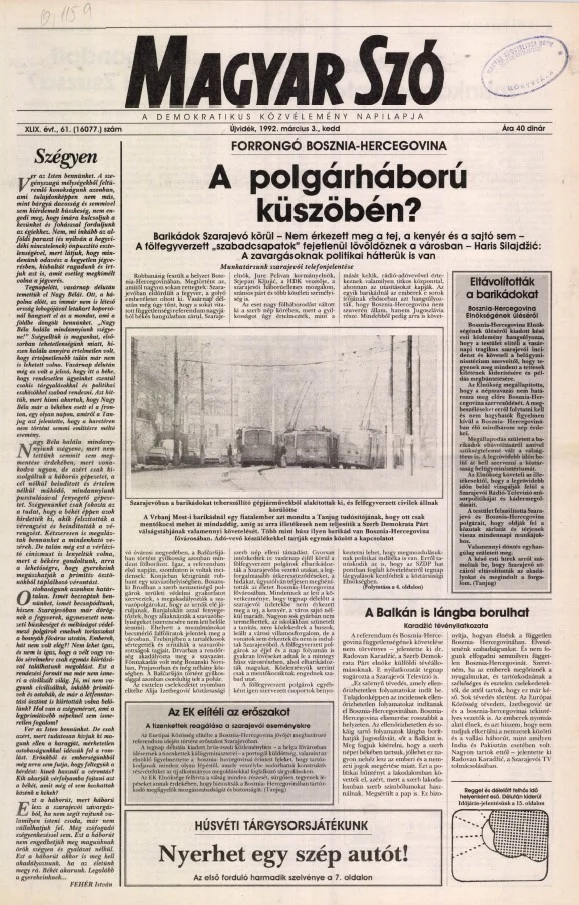 Magyar Szó, 49. évf. 1992. március 3. 61. sz. 1–20. oldal
