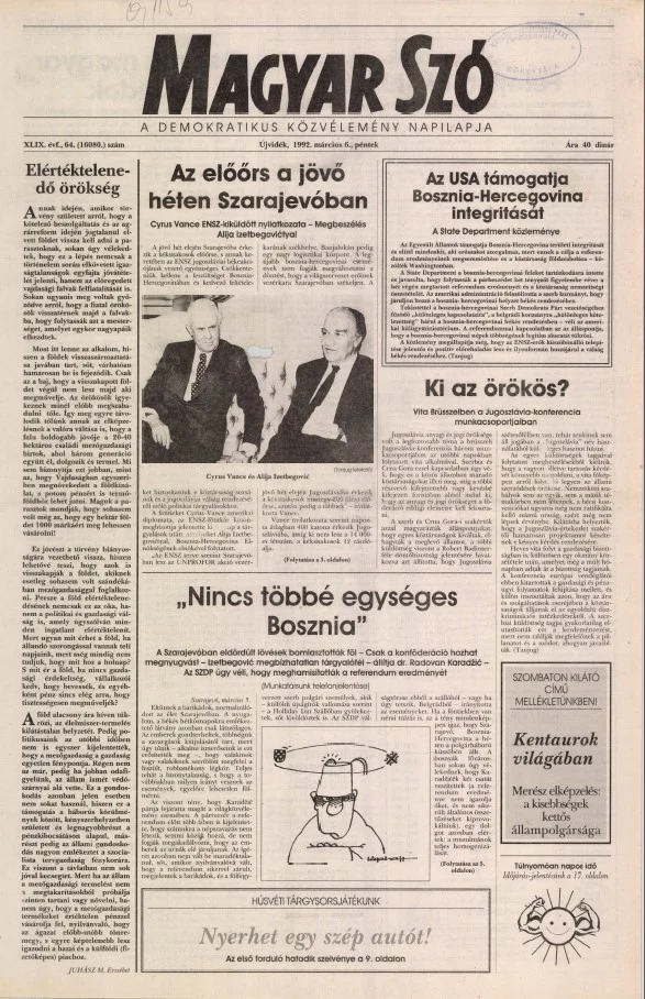 Magyar Szó, 49. évf. 1992. március 6. 64. sz. 1–20. oldal