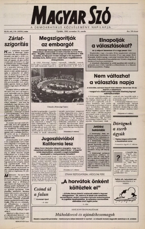 Magyar Szó, 49. évf. 1992. november 18. 318. sz. 1–16. oldal