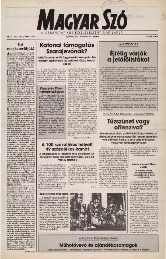 Magyar Szó, 49. évf. 1992. november 20. 320. sz. 1–16. oldal