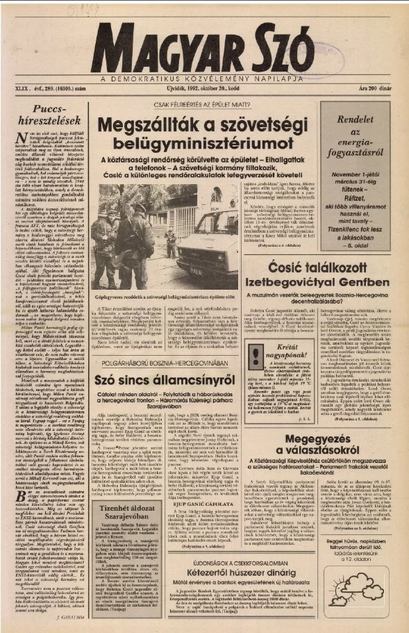 Magyar Szó, 49. évf. 1992. október 20. 289. sz. 1–16. oldal