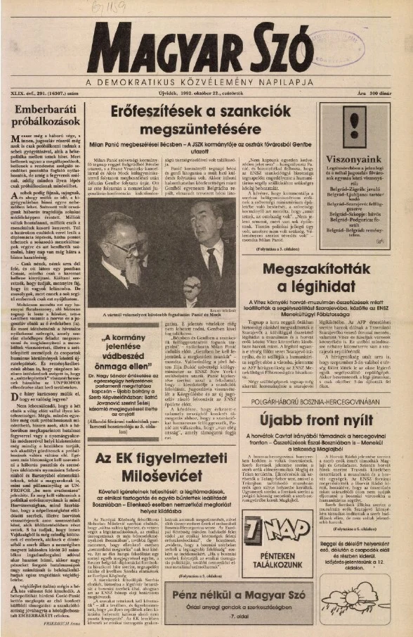 Magyar Szó, 49. évf. 1992. október 22. 291. sz. 1–16. oldal