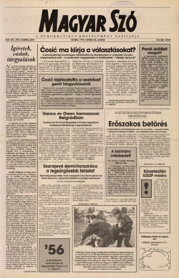 Magyar Szó, 49. évf. 1992. október 23. 292. sz. 1–16. oldal