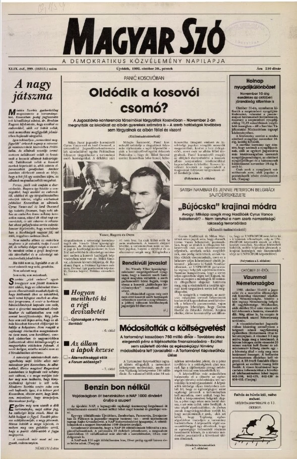 Magyar Szó, 49. évf. 1992. október 30. 299. sz. 1–16. oldal