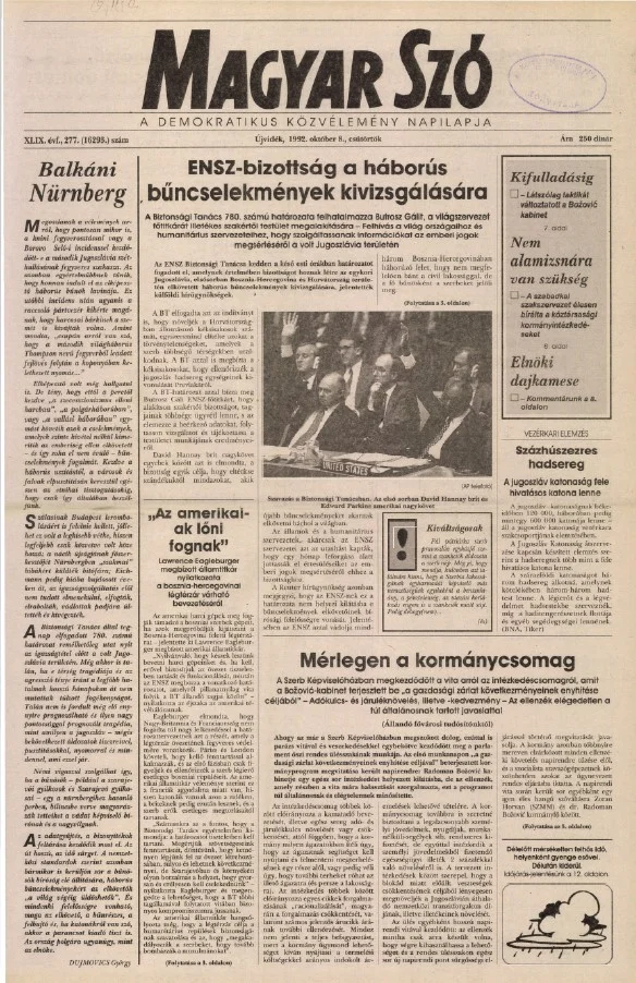 Magyar Szó, 49. évf. 1992. október 8. 277. sz. 1–16. oldal