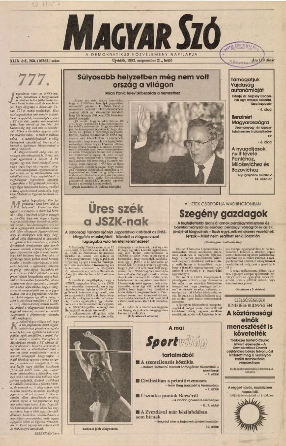 Magyar Szó, 49. évf. 1992. szeptember 21. 260. sz. 1–16. oldal