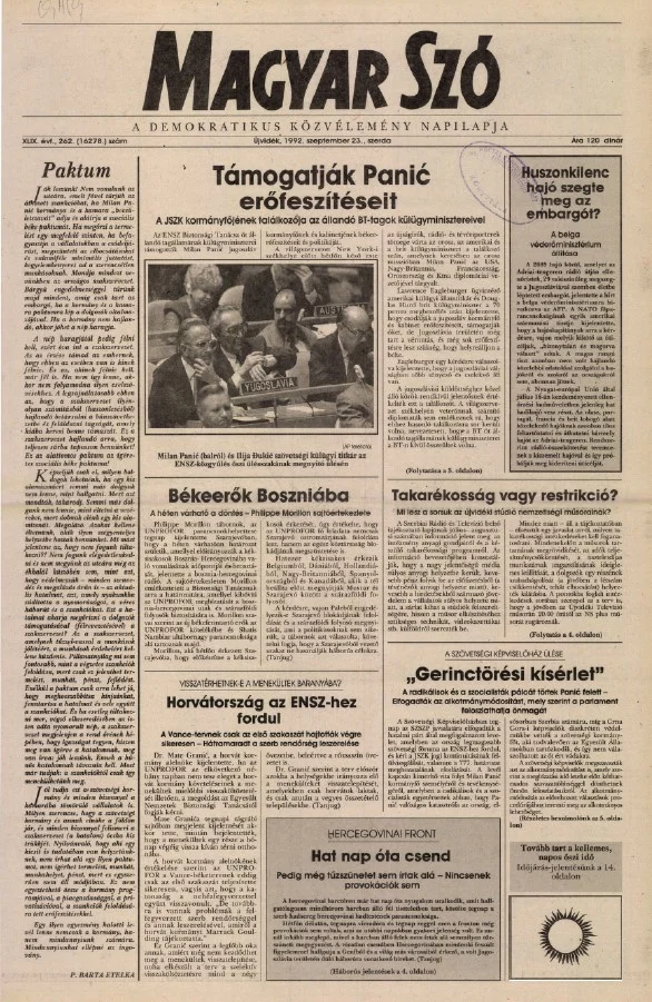 Magyar Szó, 49. évf. 1992. szeptember 23. 262. sz. 1–16. oldal