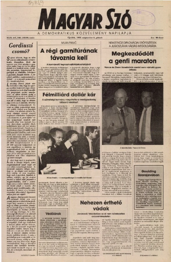 Magyar Szó, 49. évf. 1992. szeptember 4. 243. sz. 1–16. oldal