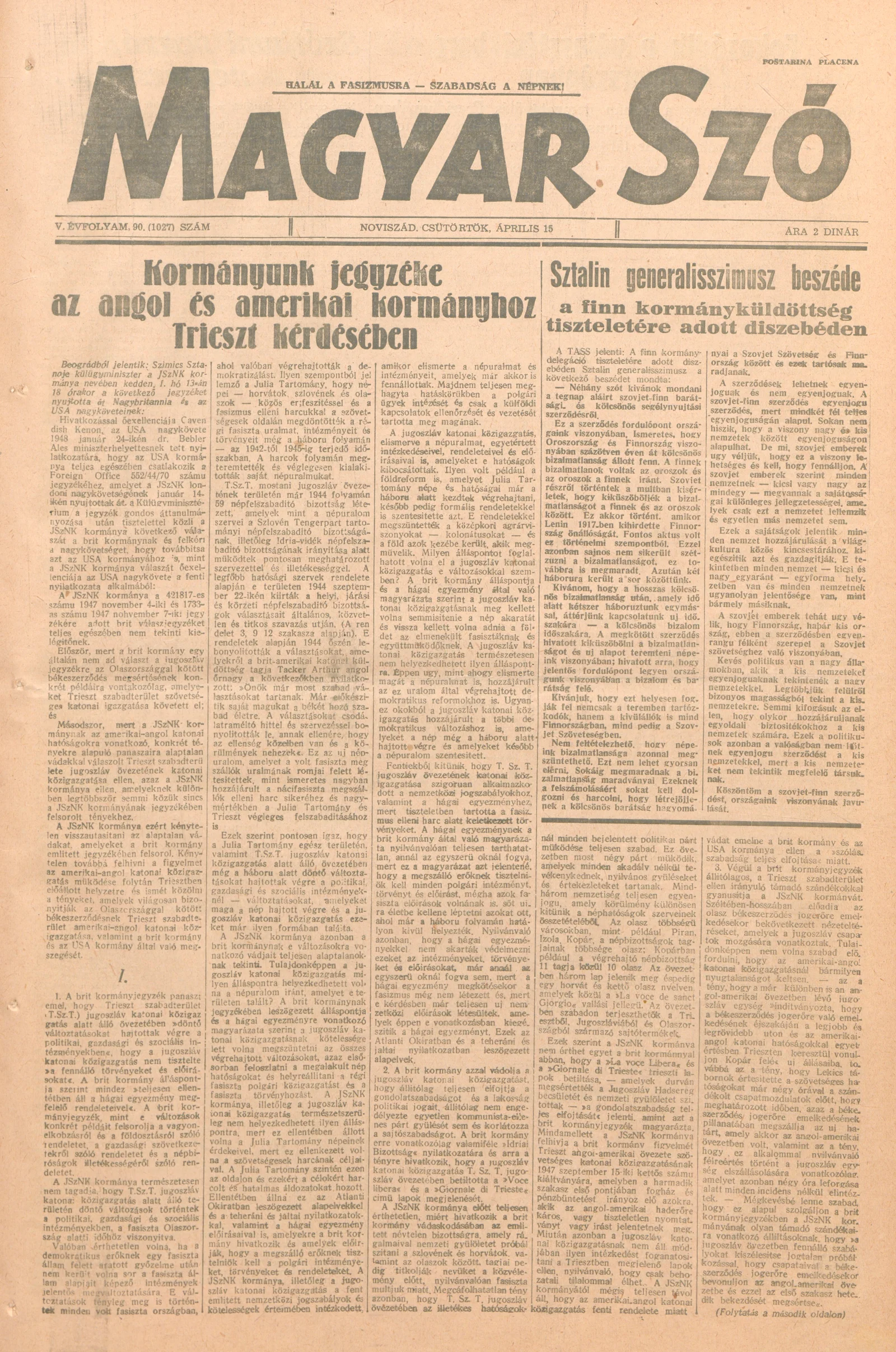 Magyar Szó, 5. évf. 1948. április 15. 90. sz. 1–4. oldal