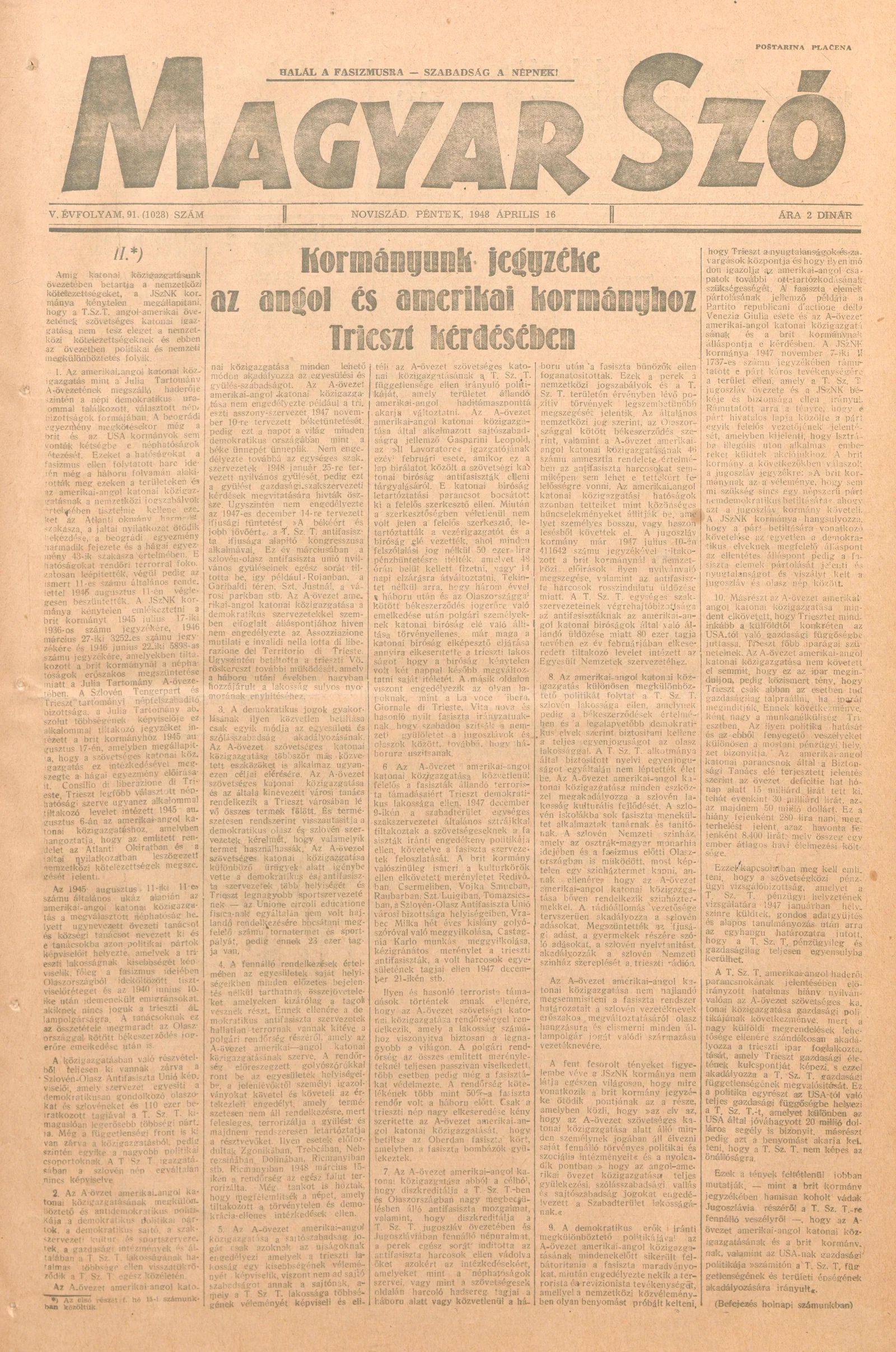 Magyar Szó, 5. évf. 1948. április 16. 91. sz. 1–4. oldal