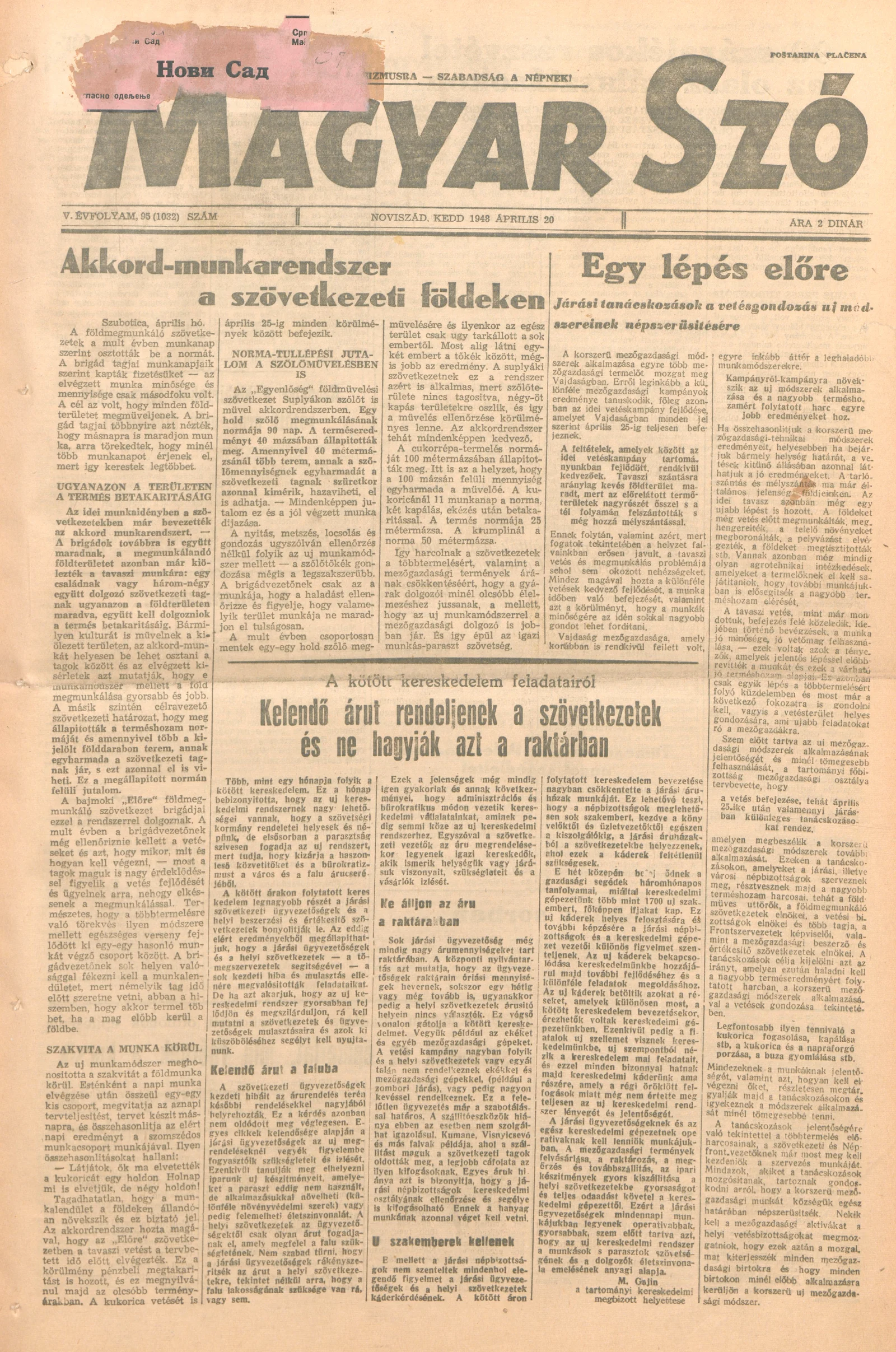 Magyar Szó, 5. évf. 1948. április 20. 95. sz. 1–4. oldal