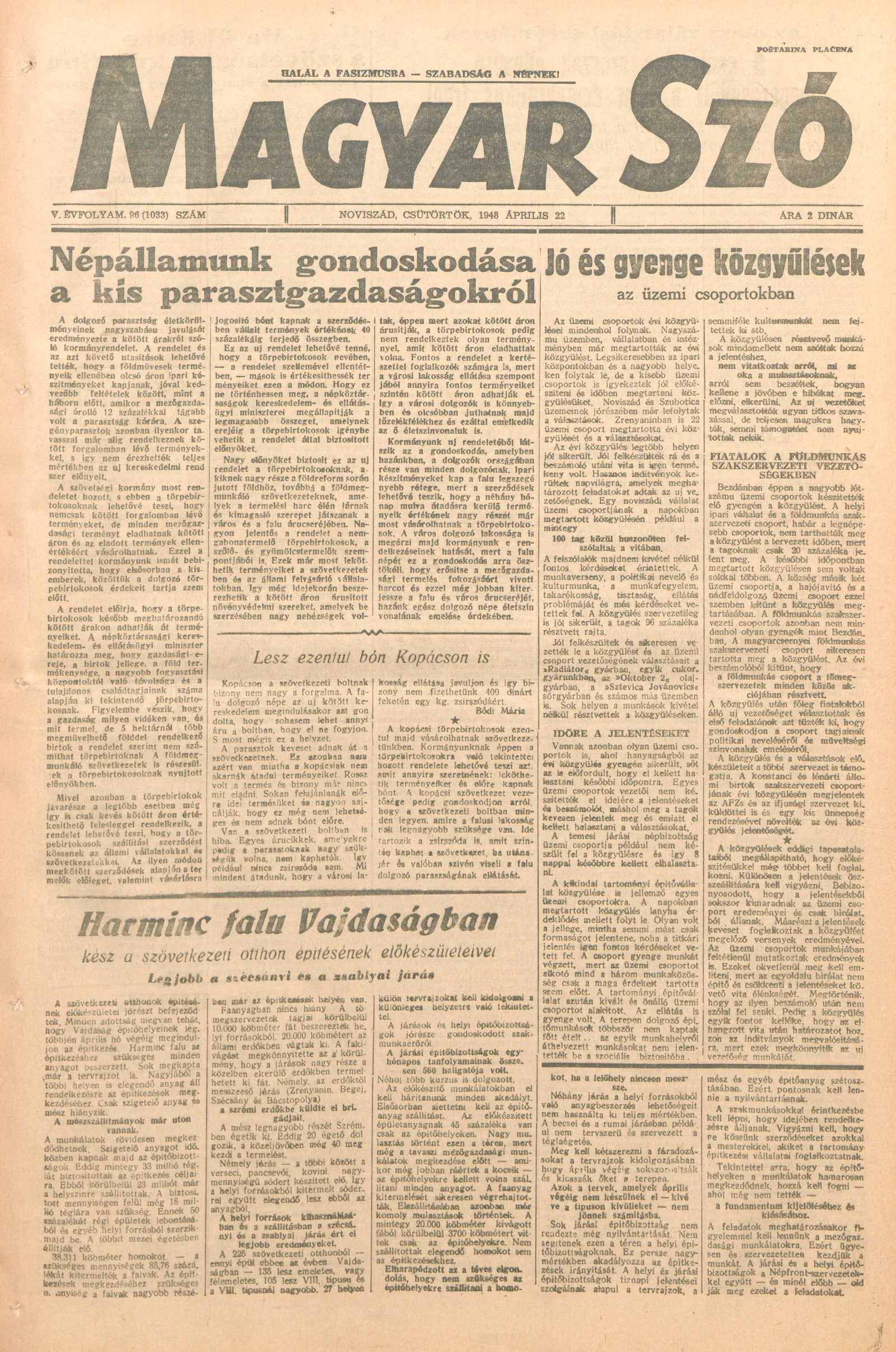 Magyar Szó, 5. évf. 1948. április 22. 96. sz. 1–4. oldal