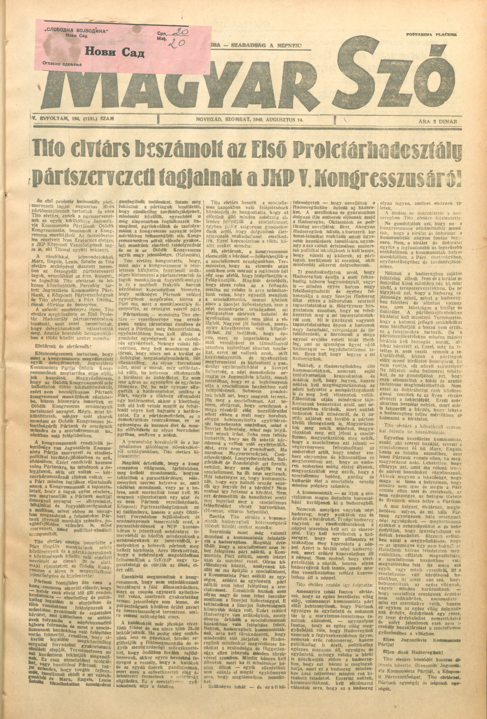 Magyar Szó, 5. évf. 1948. augusztus 14. 194. sz. 1–4. oldal