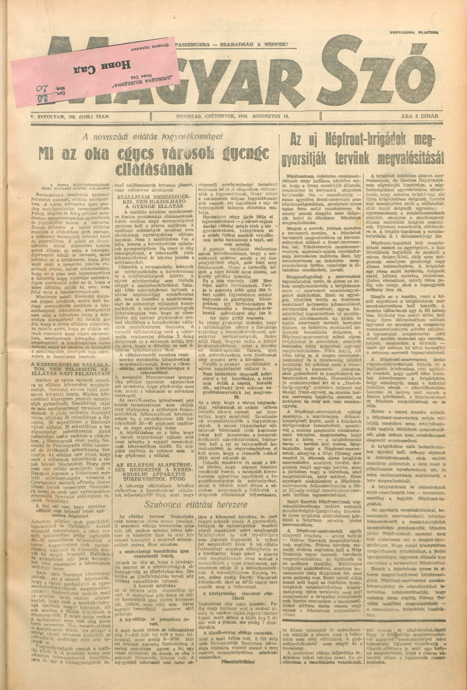 Magyar Szó, 5. évf. 1948. augusztus 19. 198. sz. 1–4. oldal