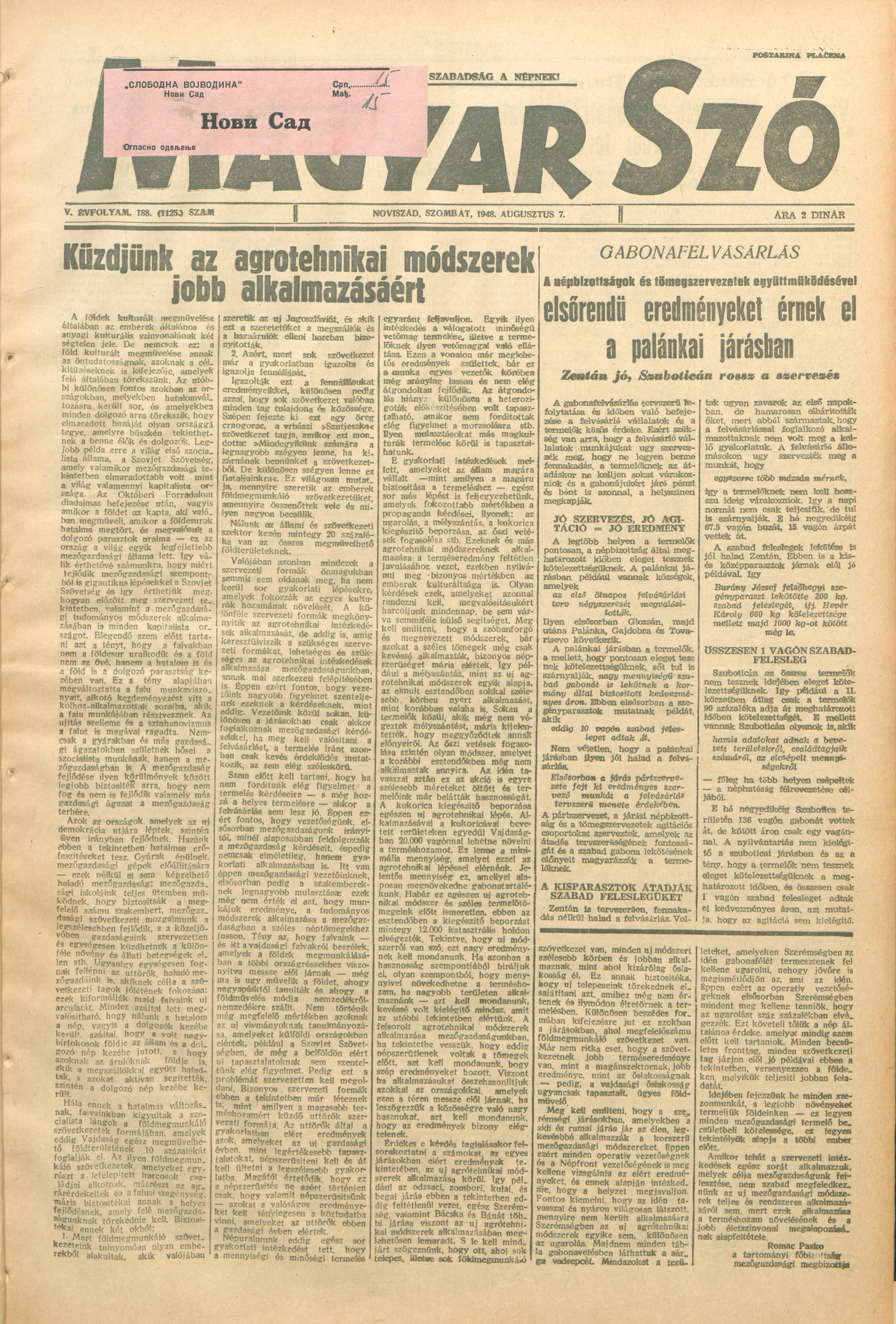 Magyar Szó, 5. évf. 1948. augusztus 7. 188. sz. 1–4. oldal