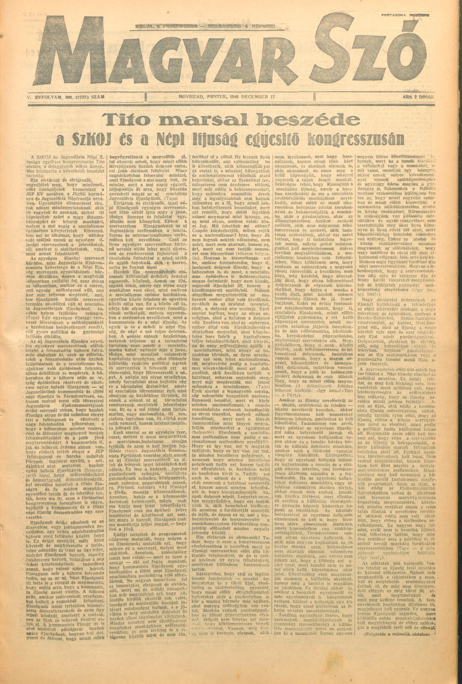 Magyar Szó, 5. évf. 1948. december 17. 300. sz. 1–4. oldal
