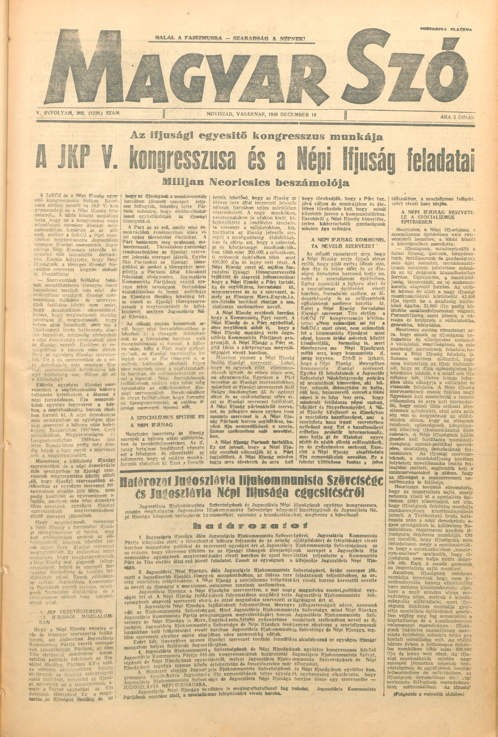 Magyar Szó, 5. évf. 1948. december 19. 302. sz. 1–4. oldal