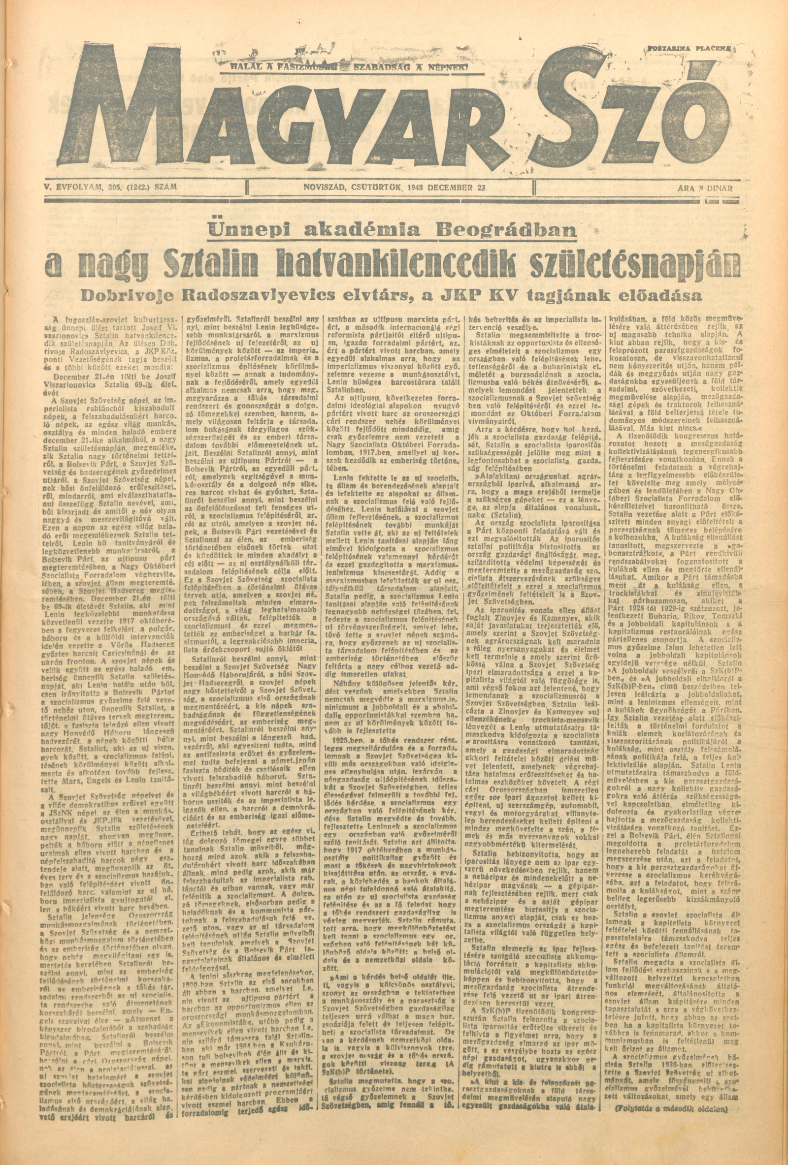 Magyar Szó, 5. évf. 1948. december 23. 305. sz. 1–4. oldal