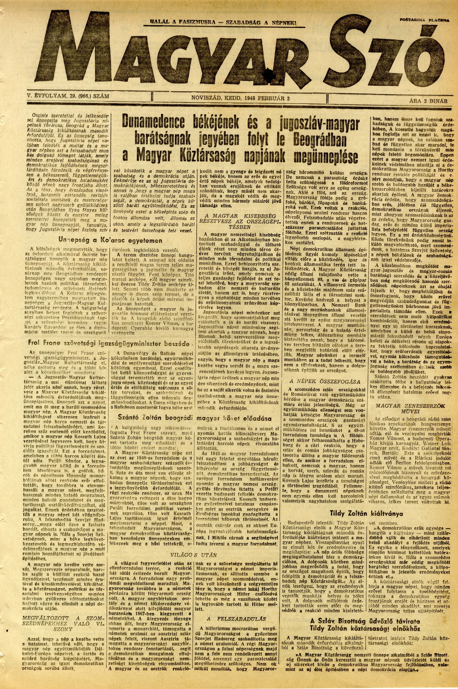 Magyar Szó, 5. évf. 1948. február 3. 29. sz. 1–6. oldal