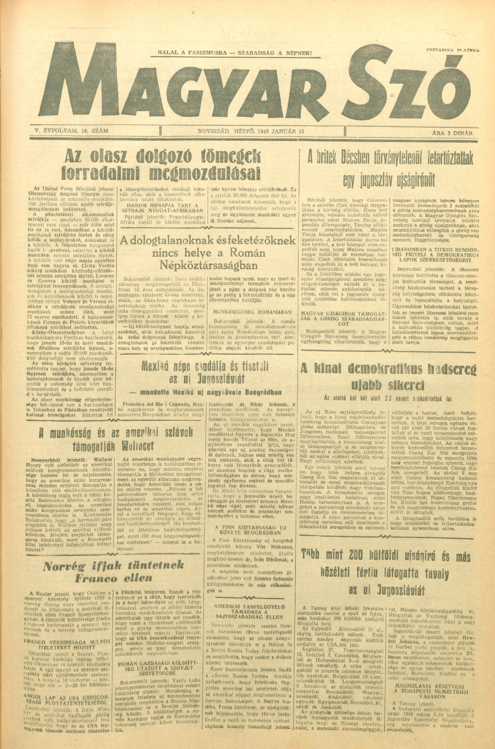 Magyar Szó, 5. évf. 1948. január 12. 10. sz. 1–6. oldal