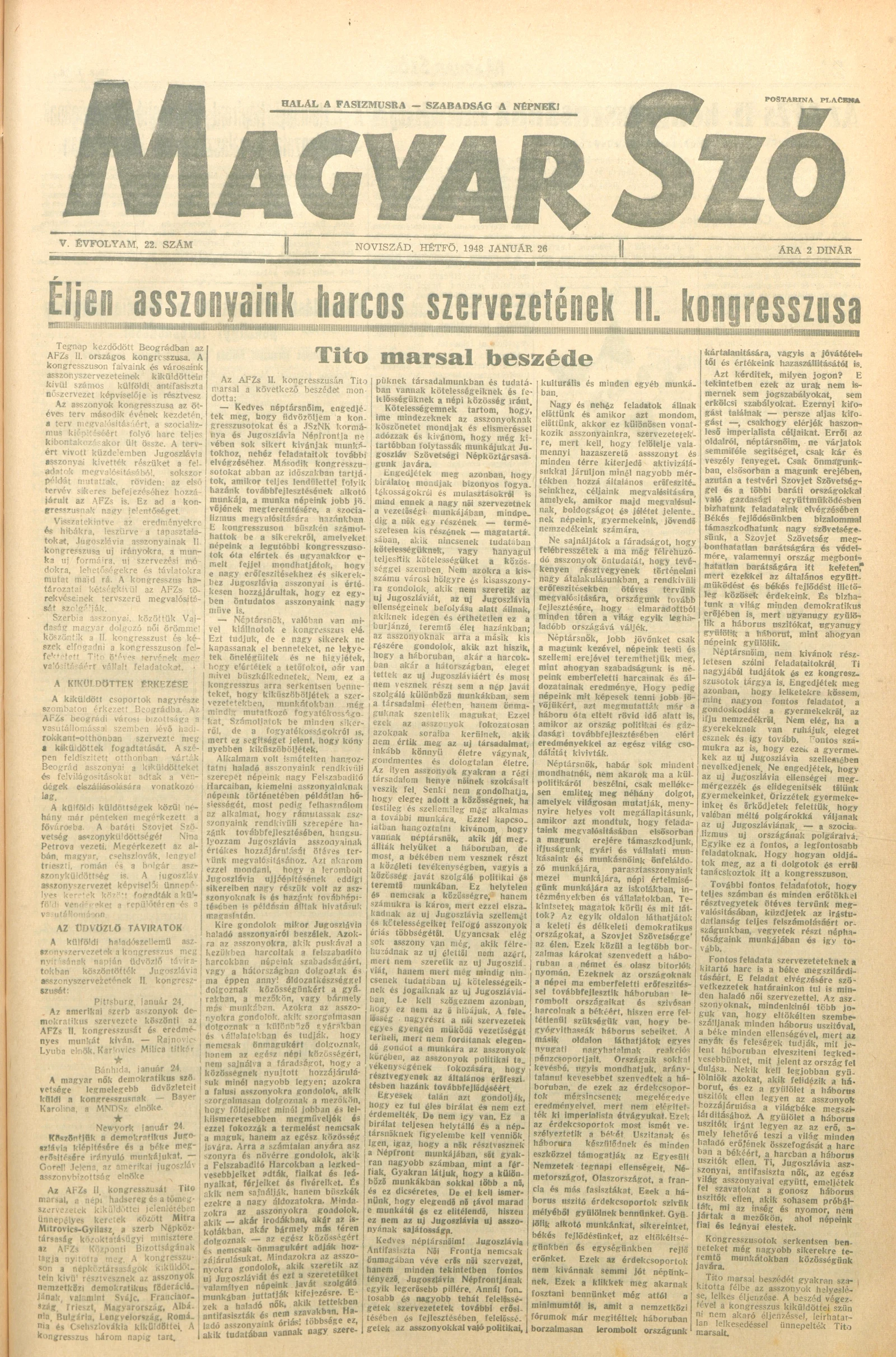 Magyar Szó, 5. évf. 1948. január 26. 22. sz. 1–6. oldal
