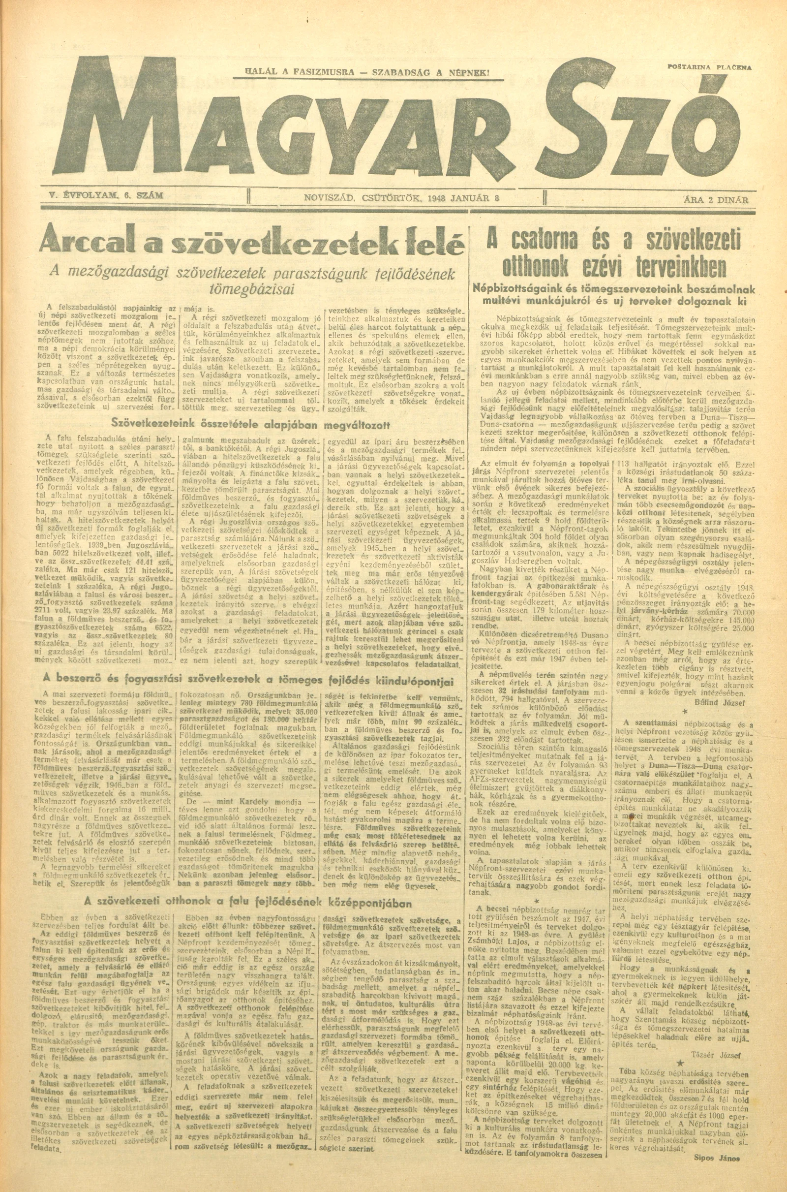 Magyar Szó, 5. évf. 1948. január 8. 6. sz. 1–6. oldal